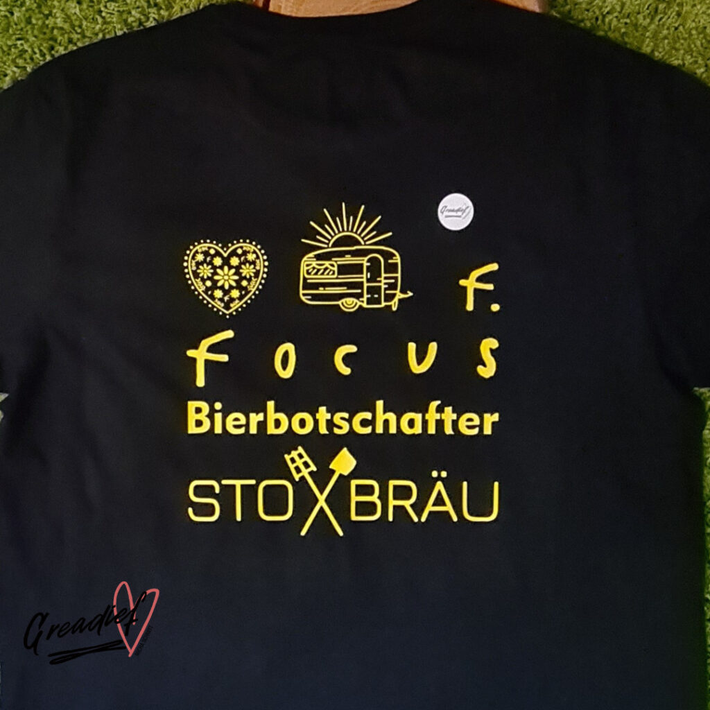 Für die Band Focus durfte Christian der Bräu ein eigenes Focus Bier 🍻 brauen, natürlich durfte da das Focus StoXbräu Fanshirt nicht fehlen. Sucht auch ihr Shirts für euren Verein, eure Clique oder einfach so❓ Schreibt mir gerne, ich freue mich 😀 #greadief #handmade #plottenmachtgluecklich #kreativrhoenerin #bastelliebe #shirt #focusband